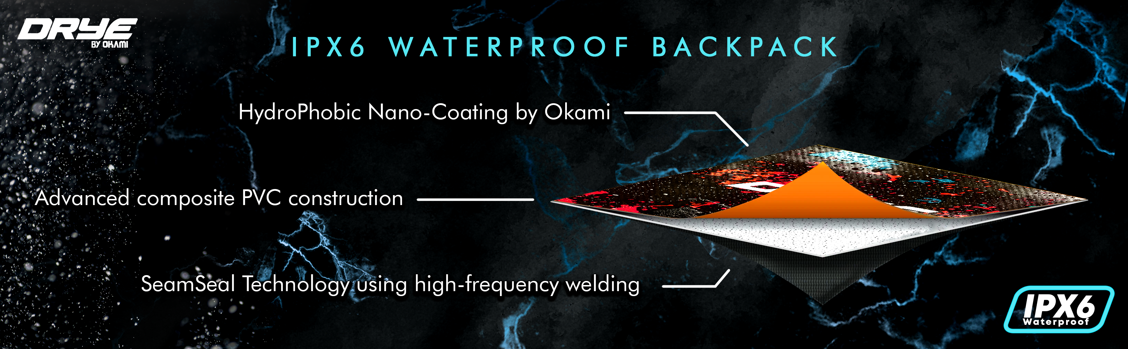 - OKAMI DRYE™ Gear - HydroPhobic Storm and Weather Proof luggage systems certified for use in heavy rains, storms, snow, and hail. Can resist high pressure and heavy sprays of water