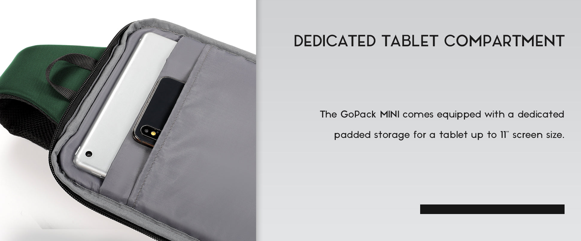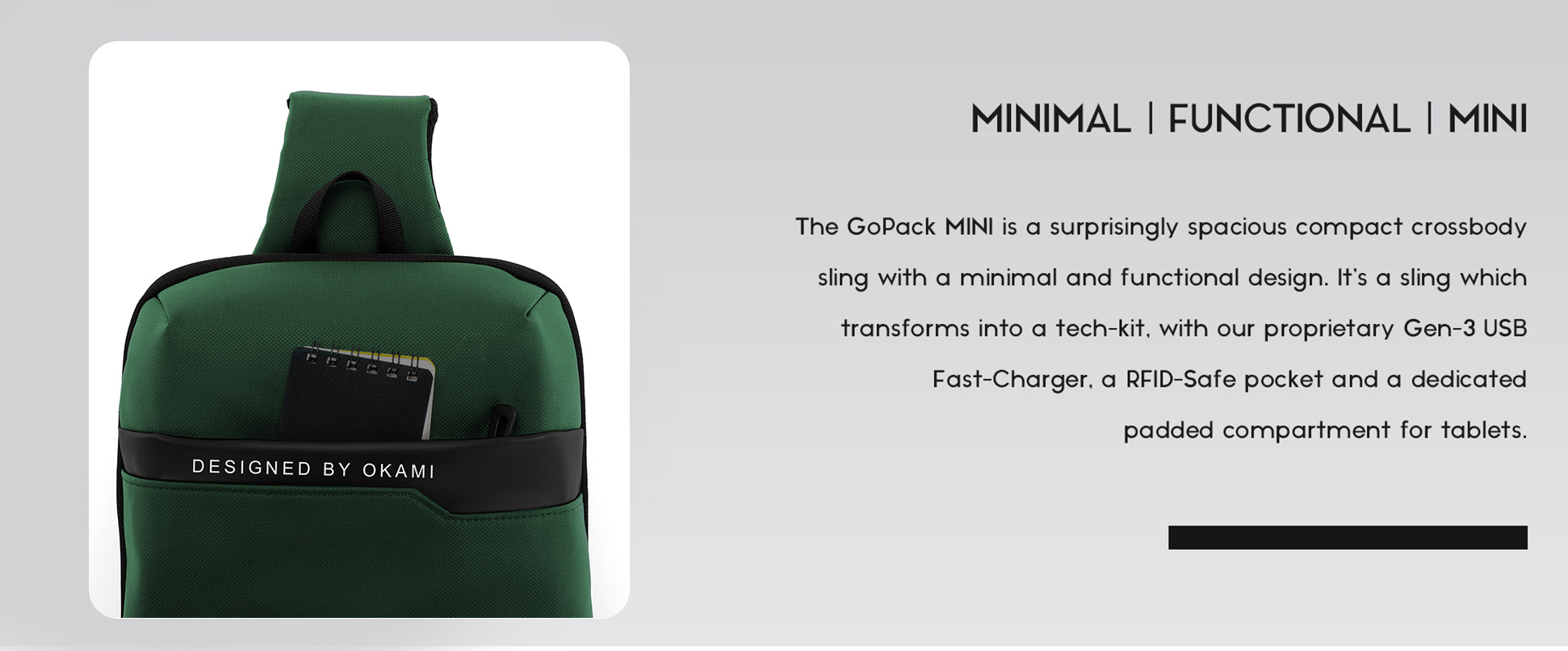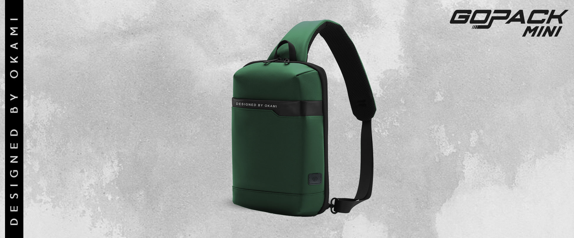 GoPack Mini Tech Sling Bag with DUAL USB with Type-C Port for Fast-Charging and Advanced Organizer (Kobe Green)