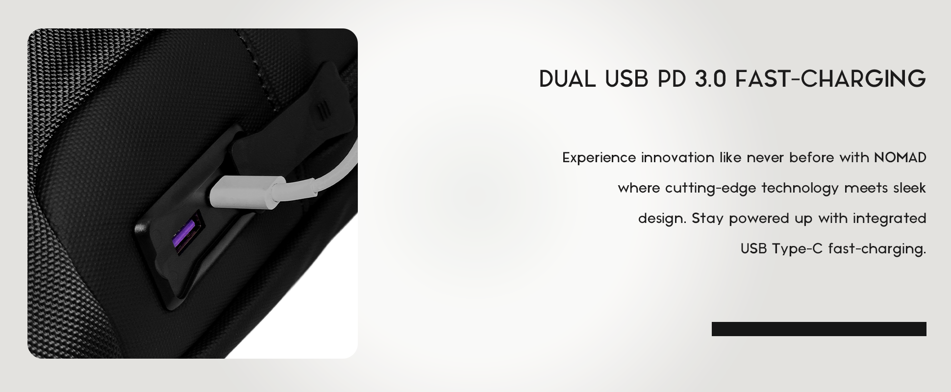 Nomad Laptop Backpack for Laptops up to 15.6" with Integrated Dual USB Type-C Fast-Charging Upto 35 Watts (Black)