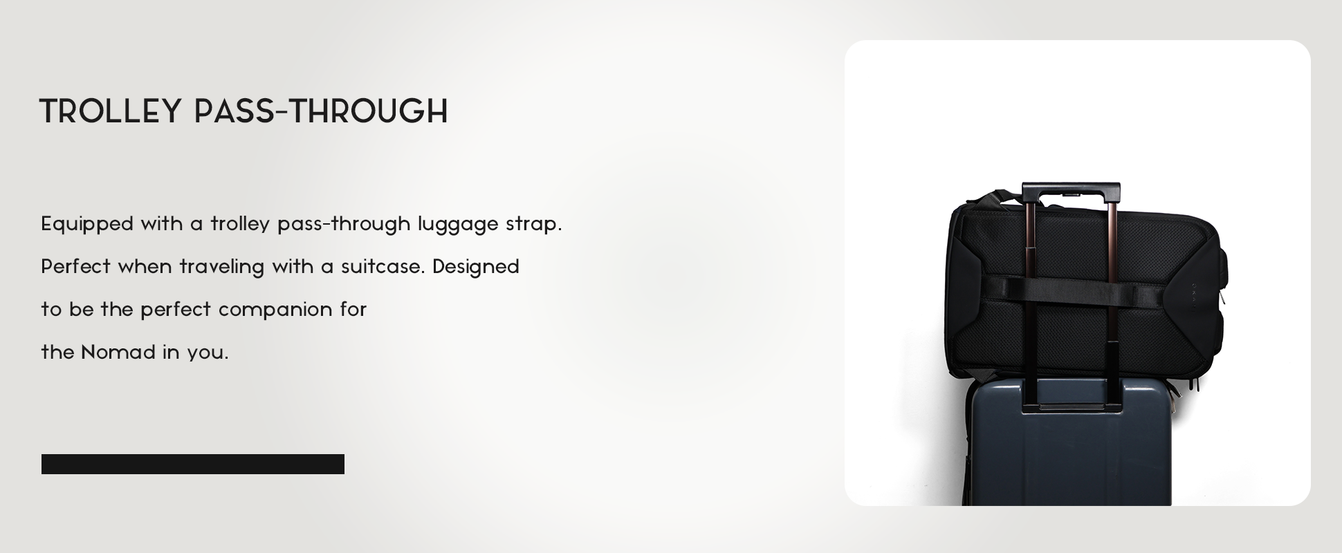 The Nomad is the one bag for every lifestyle, designed by Okami with the passion to create the most premium backpack for the nomad in you. It's the perfect dawn to dusk backpack, from work to play, and from play to work. The Nomad Backpack is designed to tackle the every day, and fit your lifestyle seamlessly