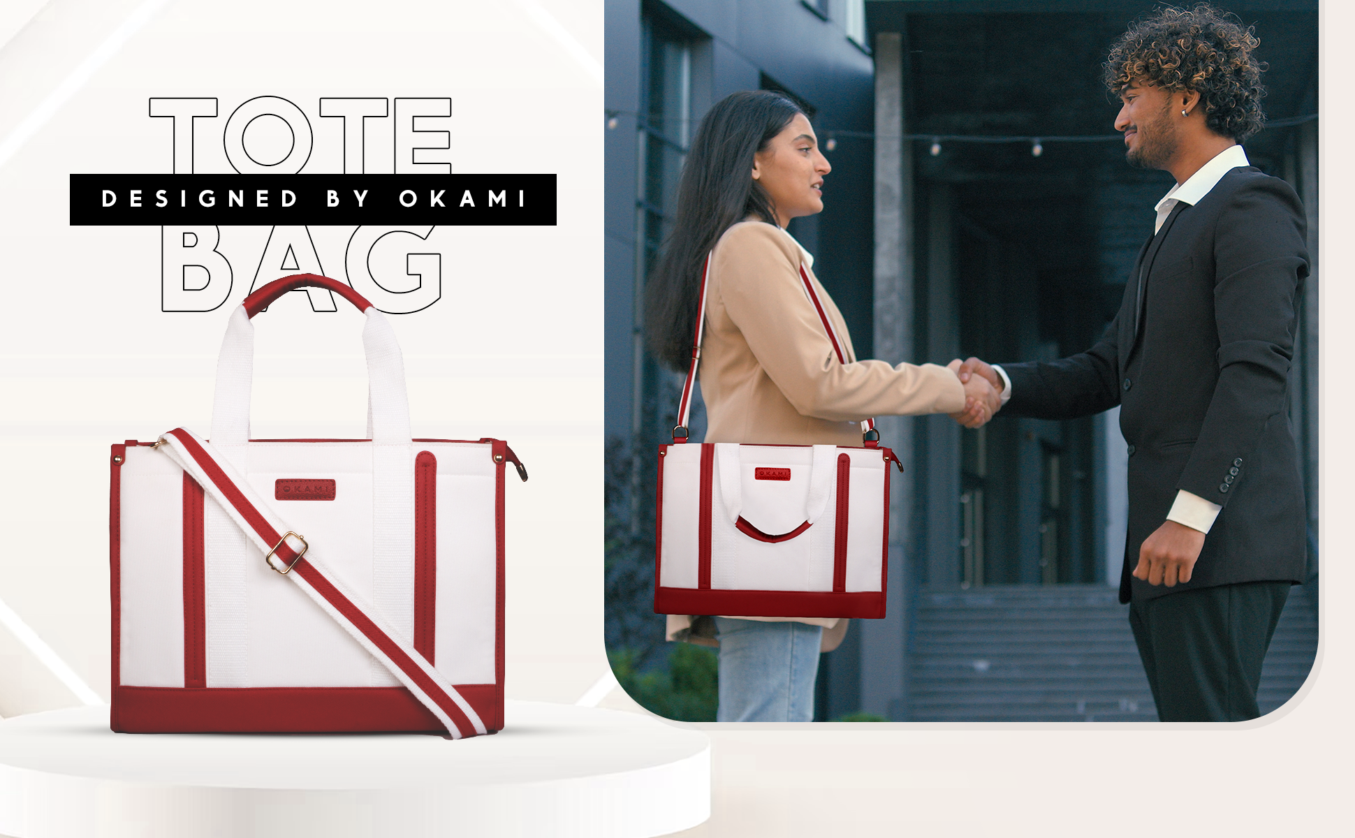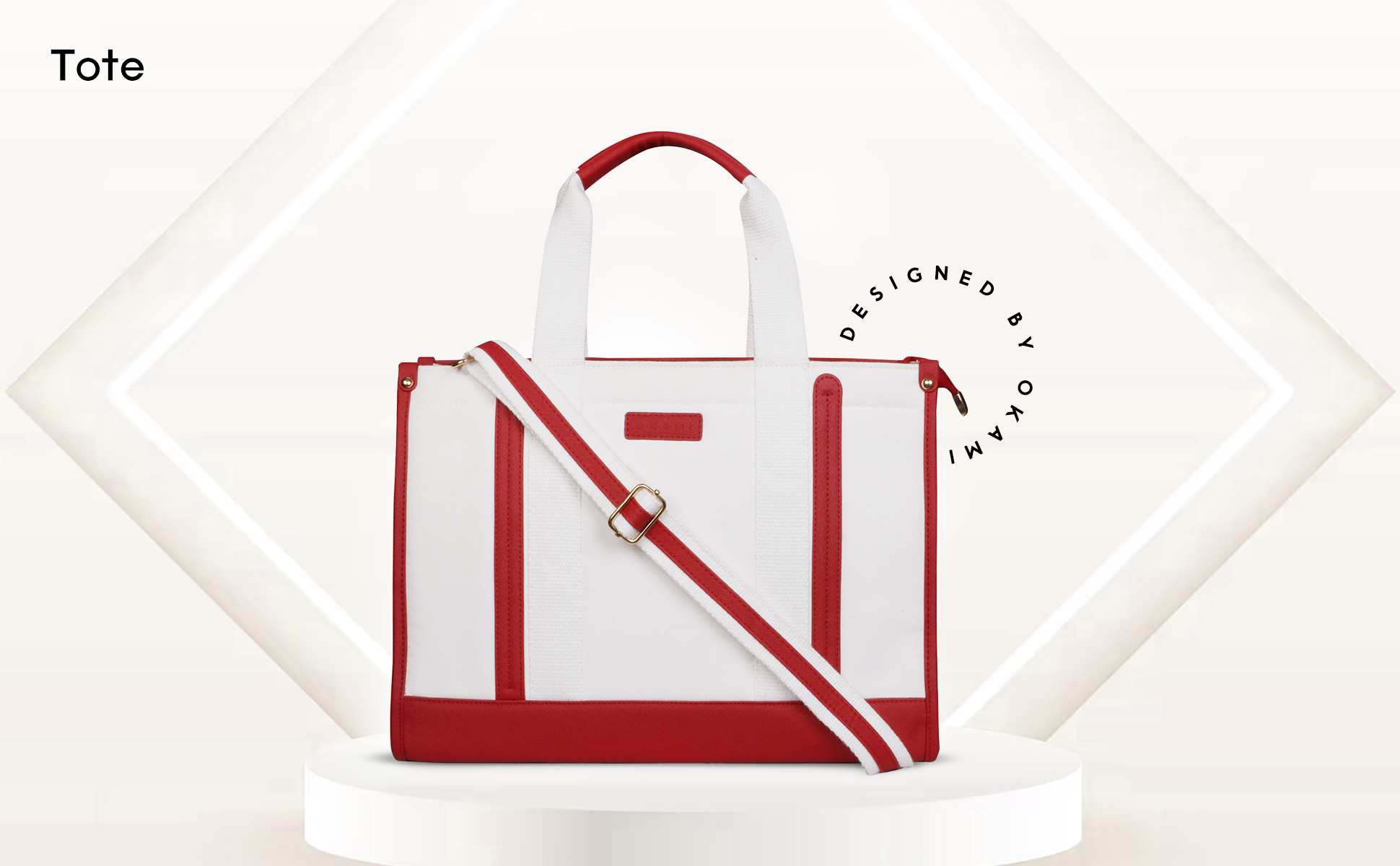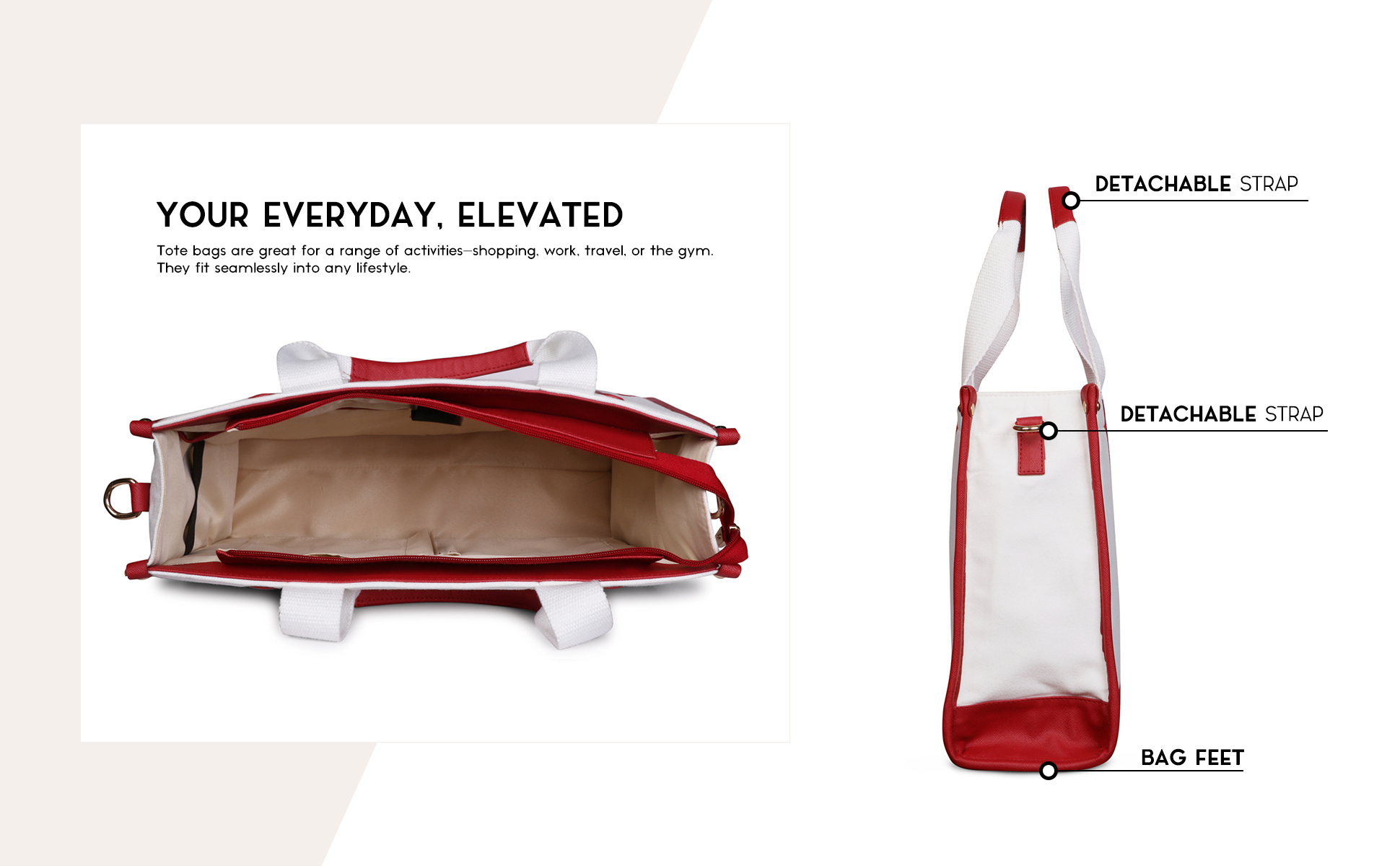 Everyday Women's Canvas Tote Bag for Laptops up to 14 Inches (White-Red)