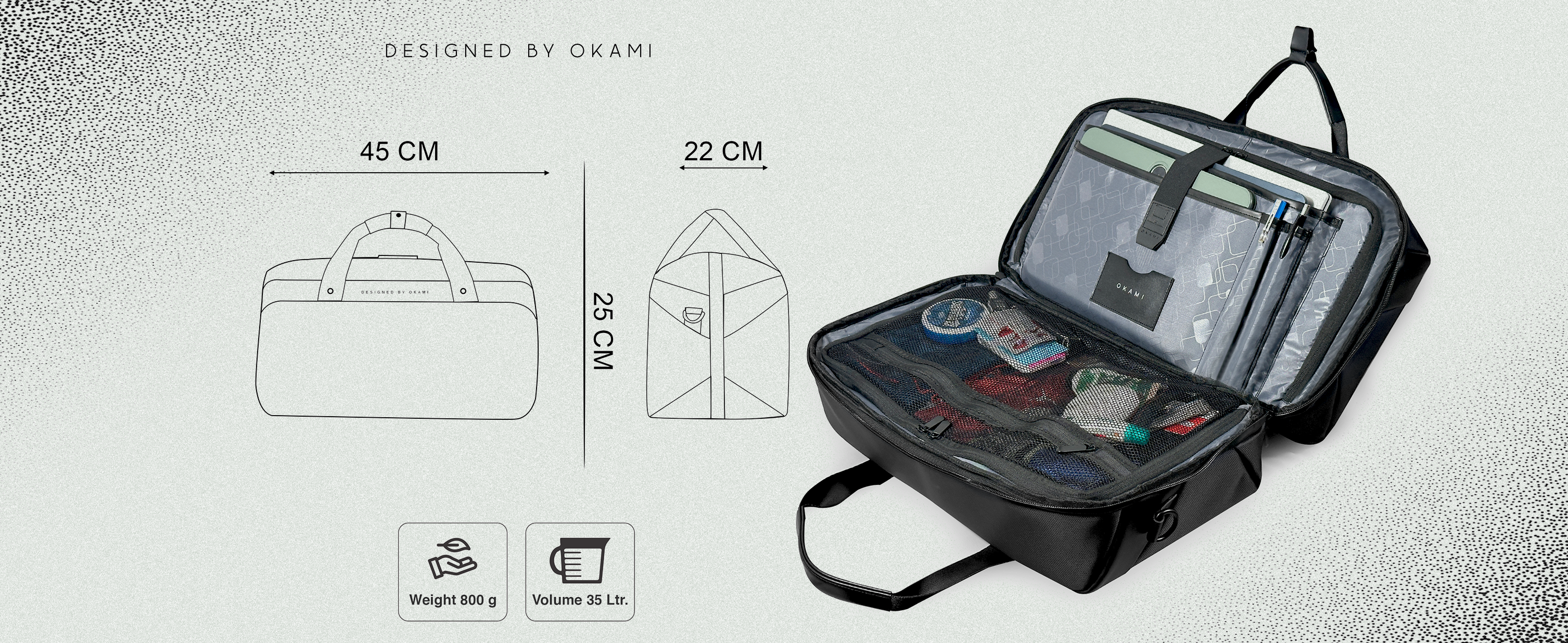 Versatile Design: The OmniPack is a dawn-to-dusk duffle bag designed for professionals, seamlessly transitioning from work to play and back.