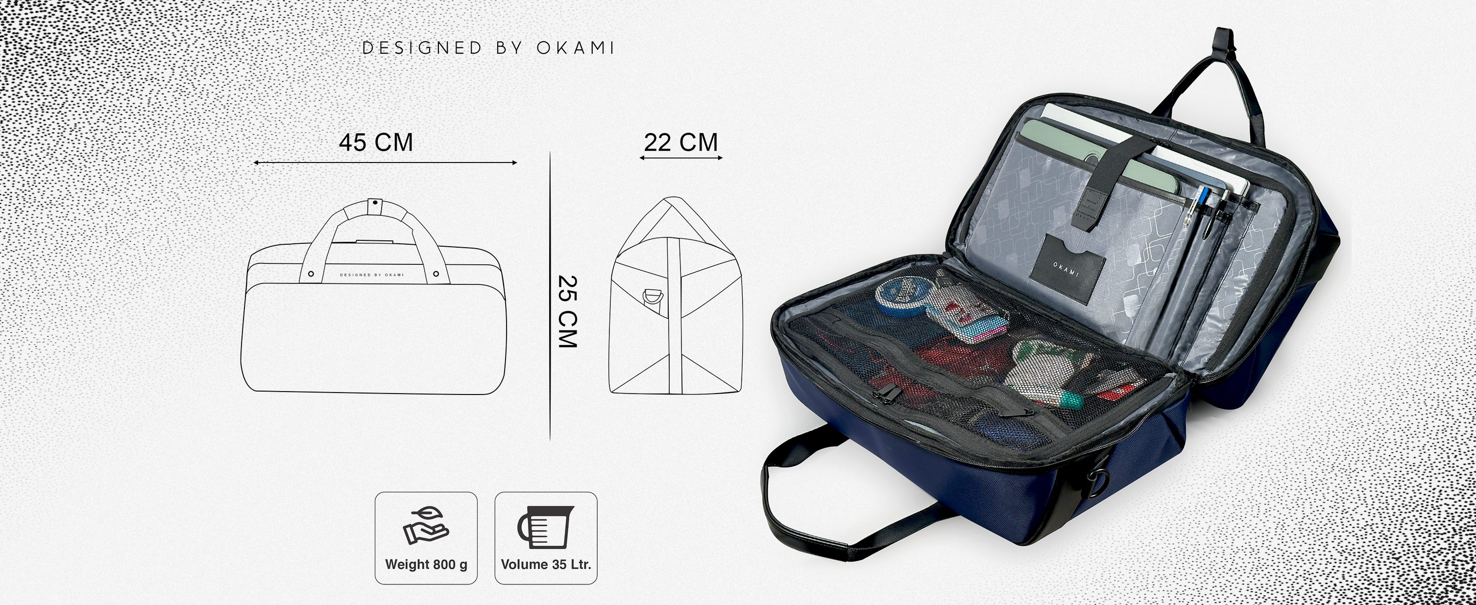 Versatile Design: The OmniPack is a dawn-to-dusk duffle bag designed for professionals, seamlessly transitioning from work to play and back.