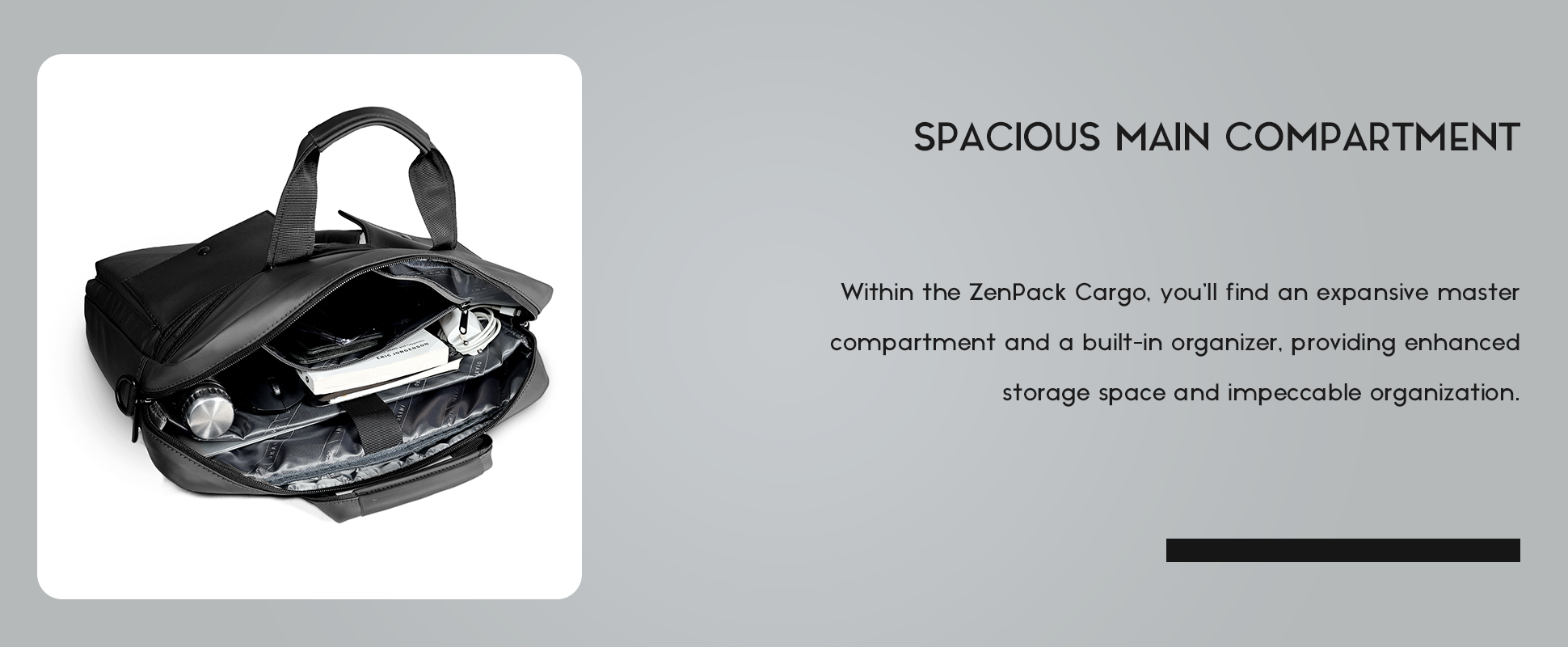 - Convertible Carry - Carry as a messenger or a briefcase, the ZenPack CARGO is suitable for both. The included detachable padded shoulder straps come with heavy-duty hardware and luxurious vegan leather inserts. With durable construction and robust materials, tackle your everyday commute with ease.