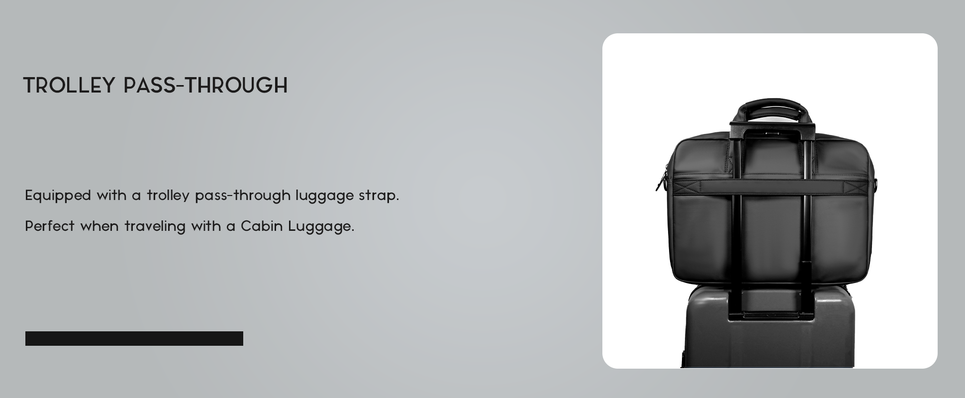 - Trolley Pass-Through Equipped with a trolley pass-through luggage strap. Perfect when traveling with a suitcase.